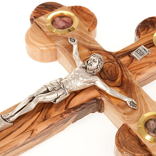 Crocifisso Trilobato in Legno d’Olivo di Betlemme con Reliquie di Gerusalemme e del Getsemani