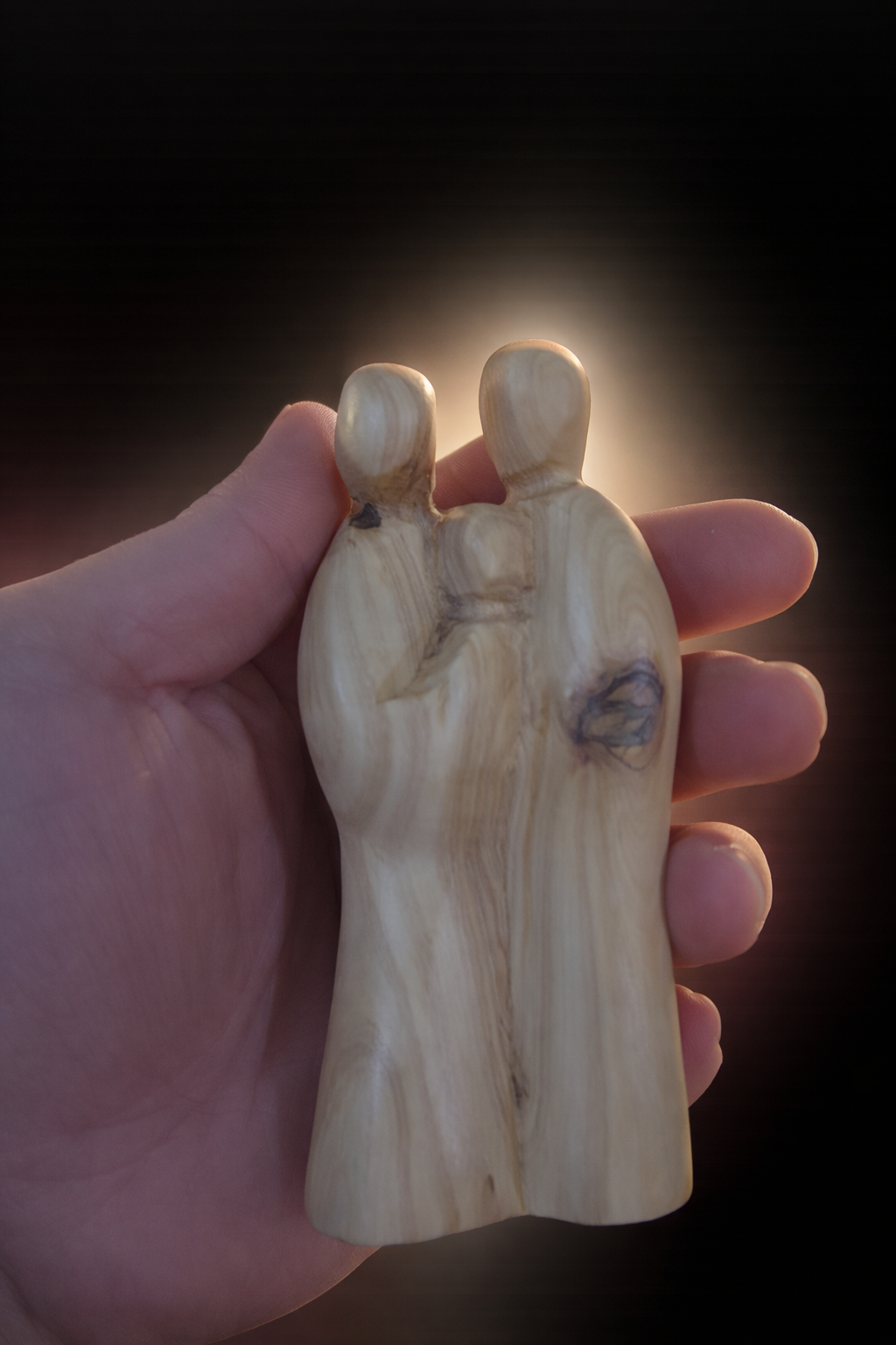 Sperimenta la tenerezza del Natale con questa Sacra Famiglia stilizzata, un’opera d’arte moderna e profonda interamente intagliata nel pregiato legno d’ulivo della Terra Santa. La figura rappresenta Maria, Giuseppe e il Bambino Gesù fusi in un unico, dolce abbraccio, a simboleggiare l’unità indissolubile e l’amore universale della famiglia.