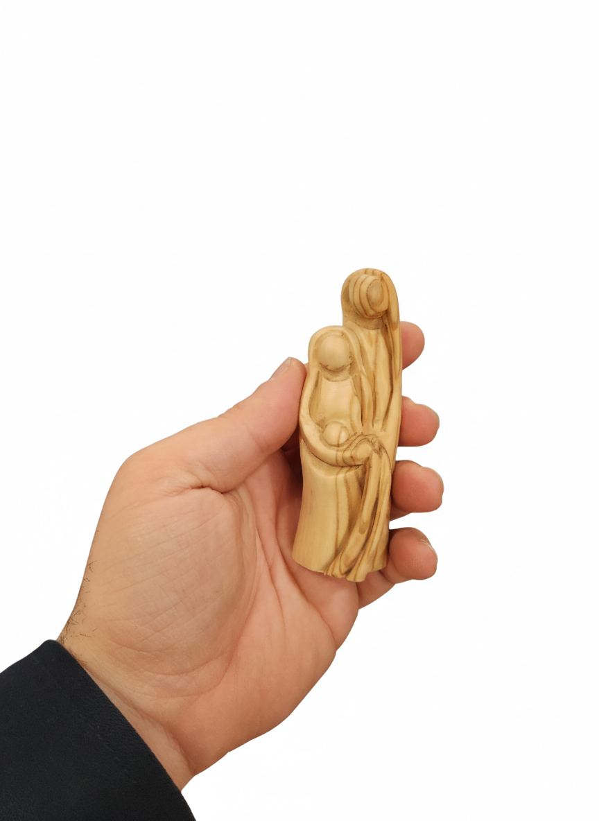 Sacra Famiglia Stilizzata in Legno d’Ulivo di Betlemme | Statuina Artigianale Moderna